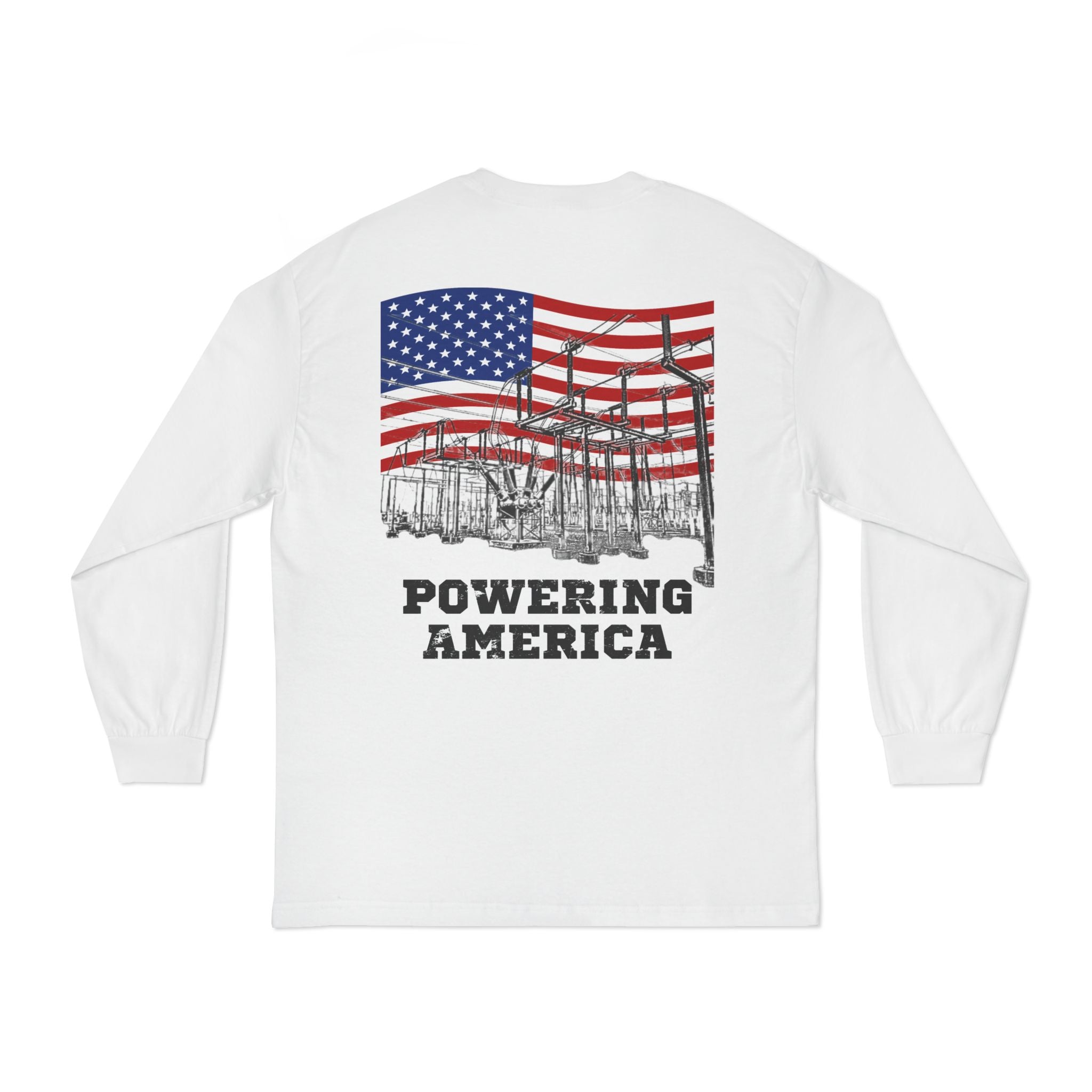 Celebrate the hardworking Lineman or Substation Technician in your life with this American Flag and substation design T-shirt. Made in the USA, this classic fit T-shirt gives off a blue collar vibe, perfect for those in the electricity industry. Ideal for Labor Day, Memorial Day, or any patriotic occasion.