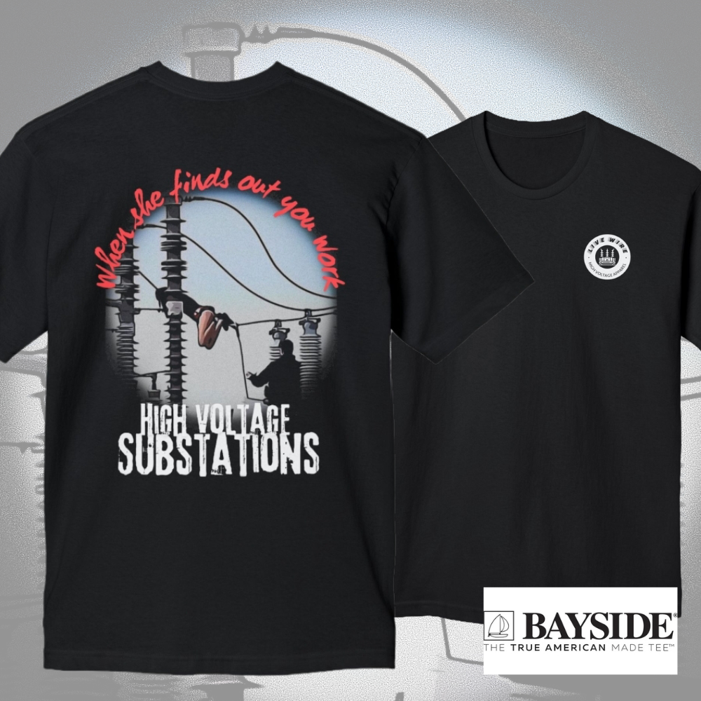This T-shirt features a woman climbing on lines inside an electrical substation in Utah, perfect for those interested in Substations and High Voltage Substations. Made in the USA, this shirt is ideal for Substation technicians and powerline enthusiasts. It provides a unique and edgy vibe, fitting well into casual everyday wear or as a statement piece for special occasions.